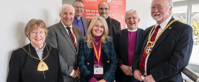 On Monday 25 March the agency held an official launch of the merger in Durham and were joined by colleagues, staff, past and present, Revd Canon Stuart Bain, the Rt Revd Paul Butler, Bishop of Durham, the Rt. Rev. Julian Henderson the Bishop of Blackburn together with the Mayor of Durham and Chair of Durham County Council John Lethbridge with his wife, Lady Mayoress Sandra Lethbridge – all pictured above with Adoption Matters Chief Executive, Norman Goodwin, CBE and Chair of Trustees Carolyn Johnson.