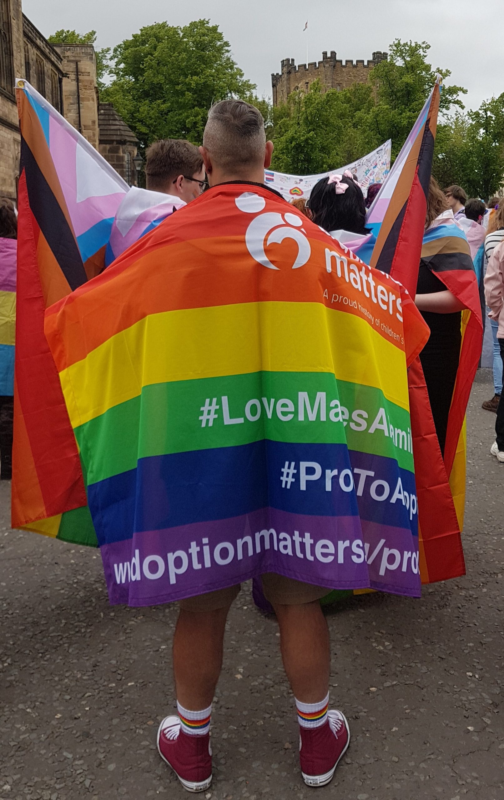 Joining the parade, which started at Durham Cathedral were members of Adoption Matters North East team, proudly waving their Pride flag and handing out their very own Adoption love hearts to the crowds.