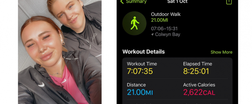 On Saturday 1 October, Katie-May completed her amazing challenge, with the support of her friend Samantha Jones (both pictured above), walking 21 miles in just over 7 hours.